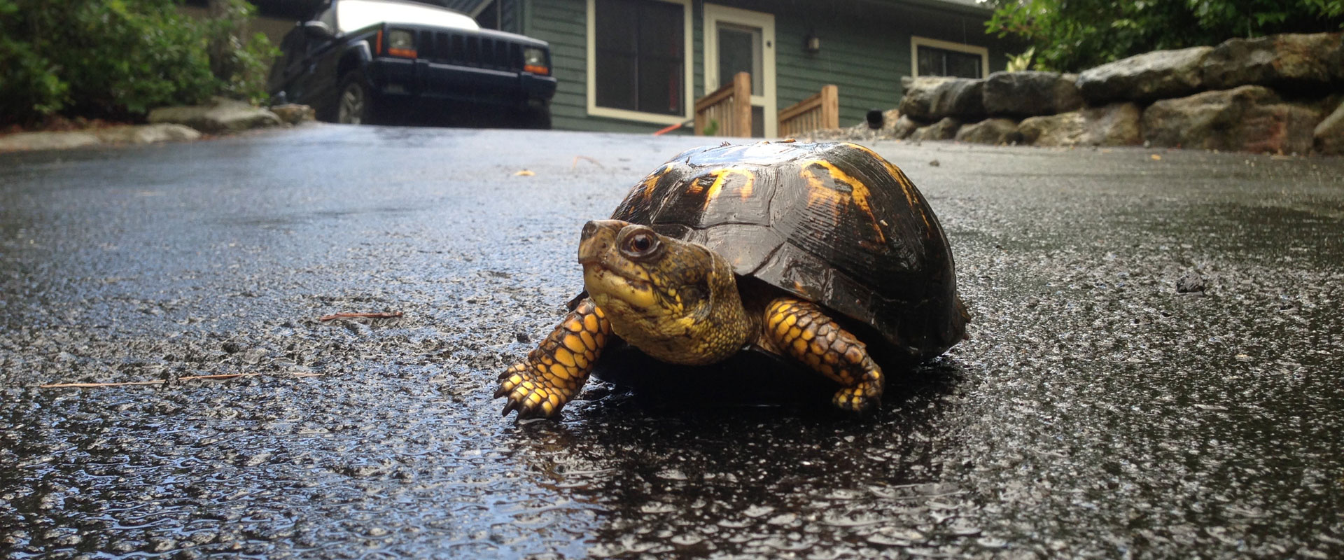 I was headed out to see a client just recently, jumped in the car and started off, only to slam on the brakes halfway down the driveway. Rather unexpectedly, there was an Eastern Box Turtle making its way across my path and I had to do some funky double foot pedal maneuvers to reverse so as to not run over it. Click through for more info on this turtle and -- of course -- some pictures.